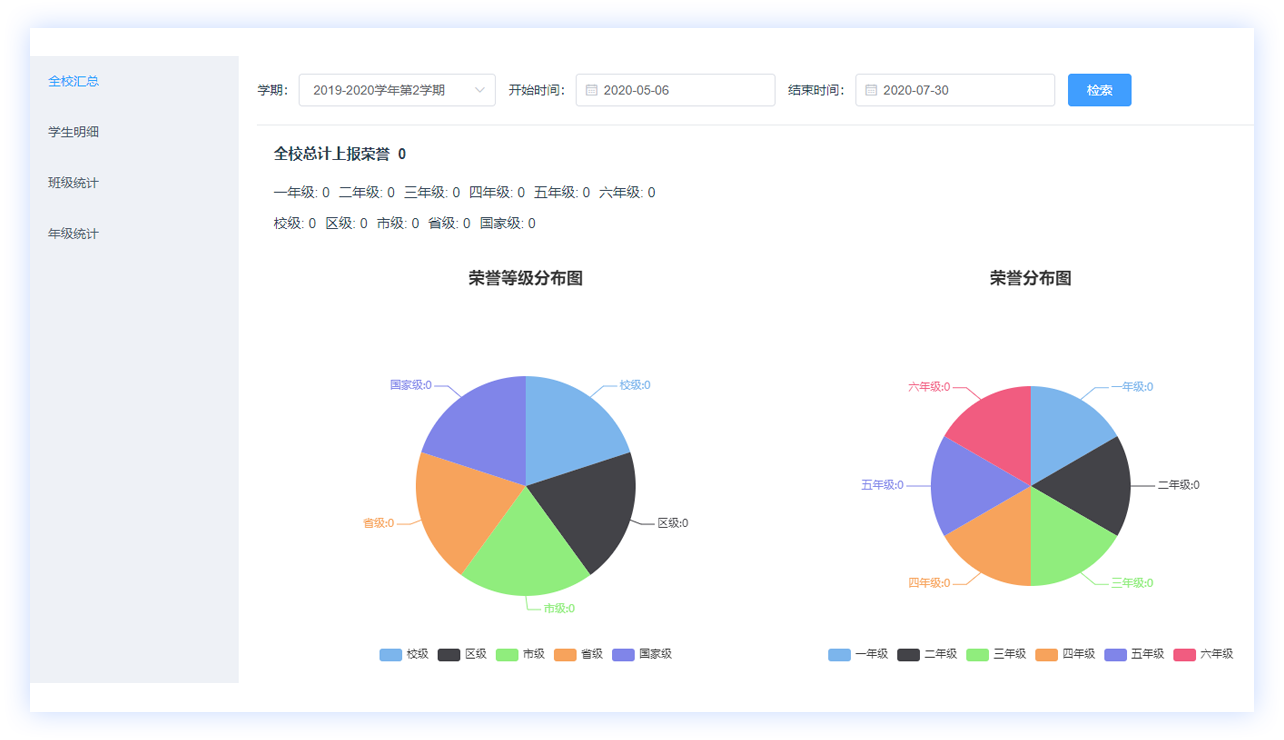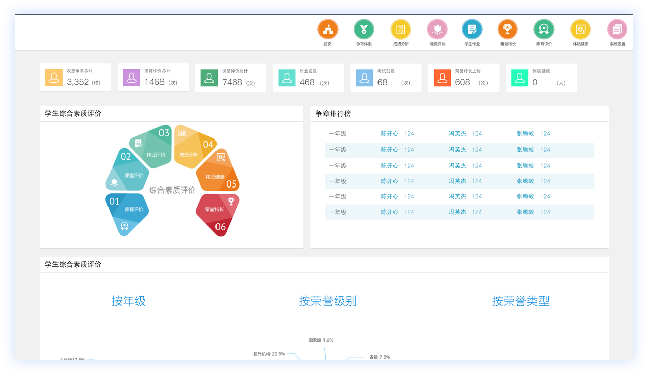 β←↓∑ 通(tōng)過展示學生(shēng)的→"¶(de)榮譽證書(shū),讓家(jiā)長(cháng)和(hé)老↕>(lǎo)師(shī)一(yī)目了(le)然了(le)π×≥解學生(shēng)的(de)榮譽特長(cháng)¶∏情況支持PC端查看(kàn)學生(shēng)明(míng)細、班∏ε±級統計(jì)、年(nián)級統計(jì);支持查看(kàn)學生☆(shēng)過往榮譽。
