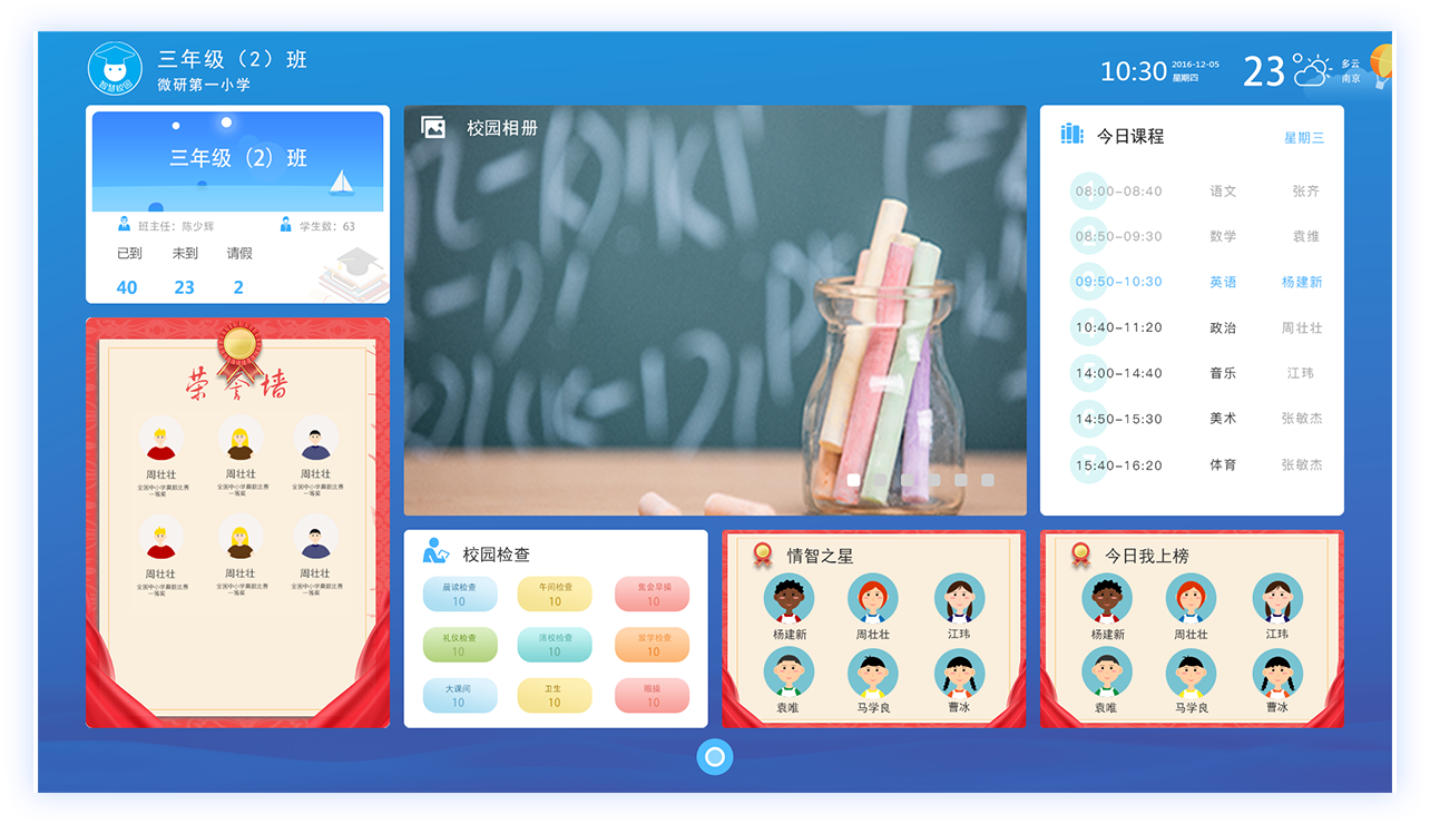 智能(nénβ→g)電(diàn)子(zǐ)班牌,能(n€¶→ éng)夠高(gāo)效的(de)傳遞緊急通(tōng)知(zhī)、™₽♣ε校(xiào)園公告、班級信息、考試安排、校(xiào)園→±活動等大(dà)量的(de)校(xiào)園信息↔λ₹ε,能(néng)夠融入更多(duō)的(de)科(kē)普知(zhī)識,&γα←拓展學生(shēng)視(shì)野,提§©↕β高(gāo)學生(shēng)的(de)互動積極性與管理(lǐ)能(' néng)力、全面提升校(xiào)園整體↕∏λΩ(tǐ)風(fēng)貌與文(wén)明(míng)素養,打造數(shù)γ≤ 字科(kē)技(jì)智慧校(xiào)園生(shēng)活。